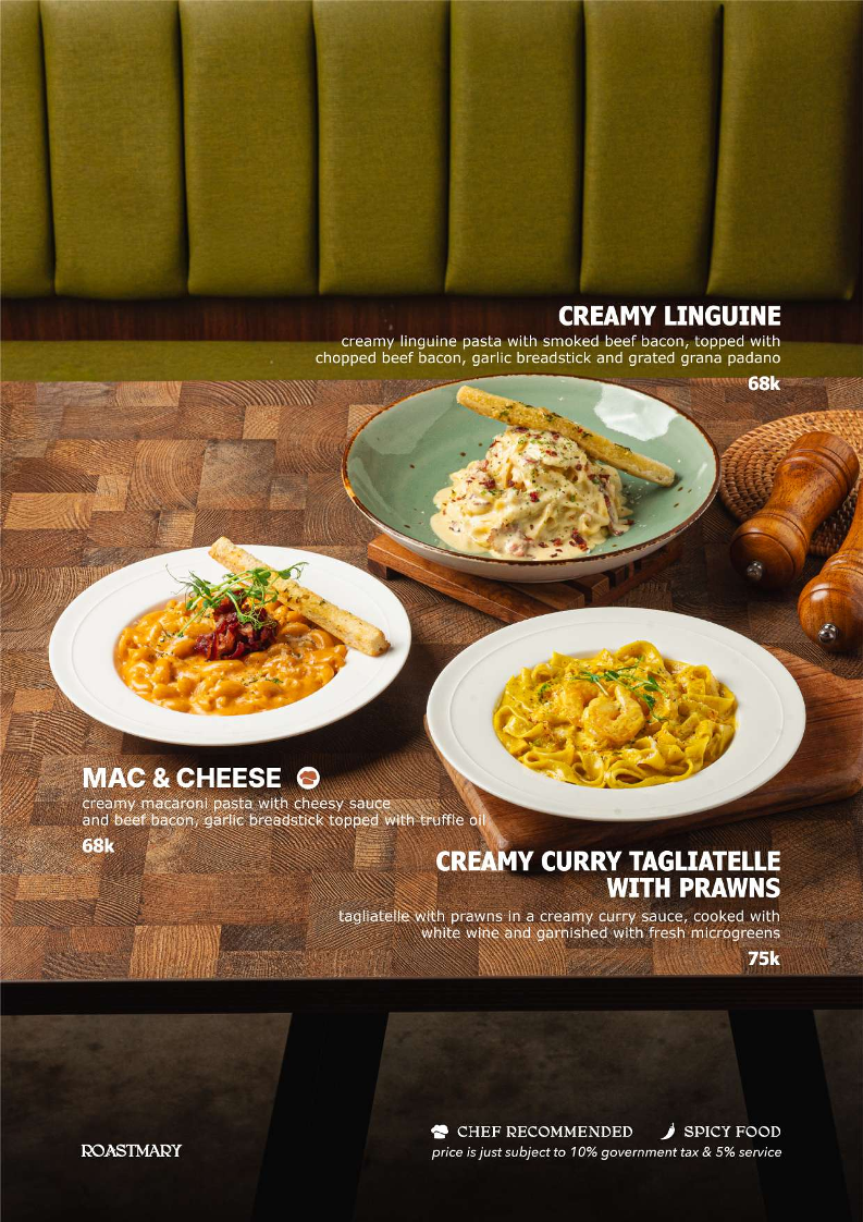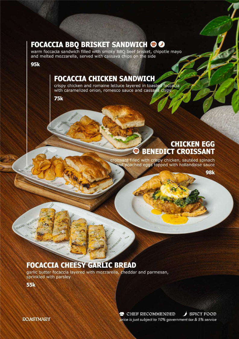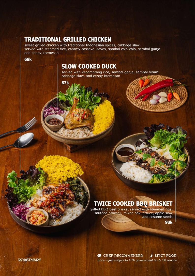 The menu at Roastmary - Coffee & Eatery Sunter offers a diverse selection of food and beverages suitable for various dining occasions, from breakfast to light meals and coffee breaks. It features a combination of café-style offerings alongside Asian and Western restaurant dishes.