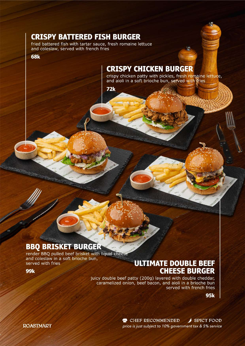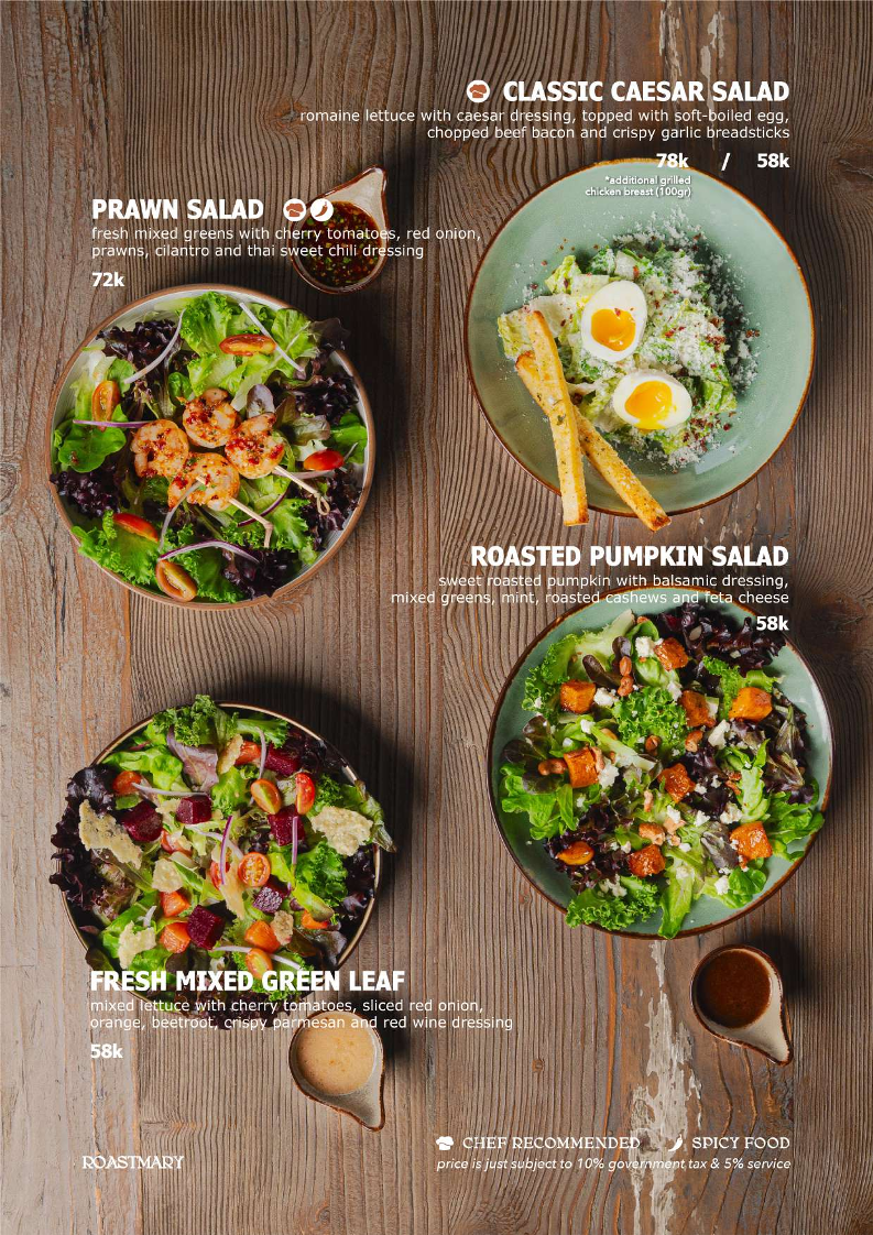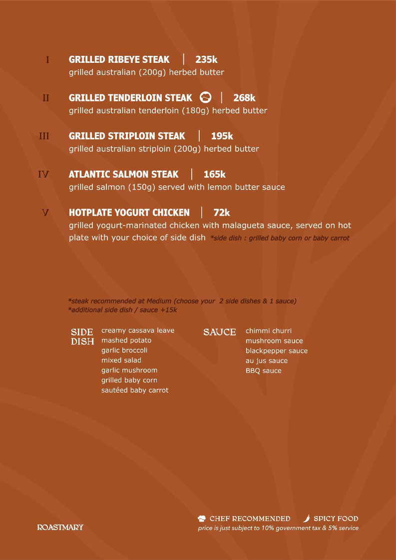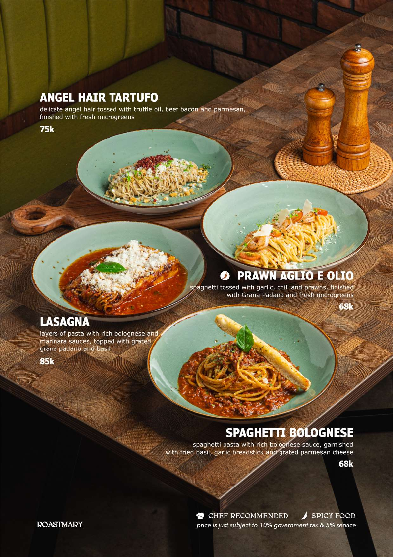 The menu at Roastmary - Coffee & Eatery Sunter offers a diverse selection of food and beverages suitable for various dining occasions, from breakfast to light meals and coffee breaks. It features a combination of café-style offerings alongside Asian and Western restaurant dishes.