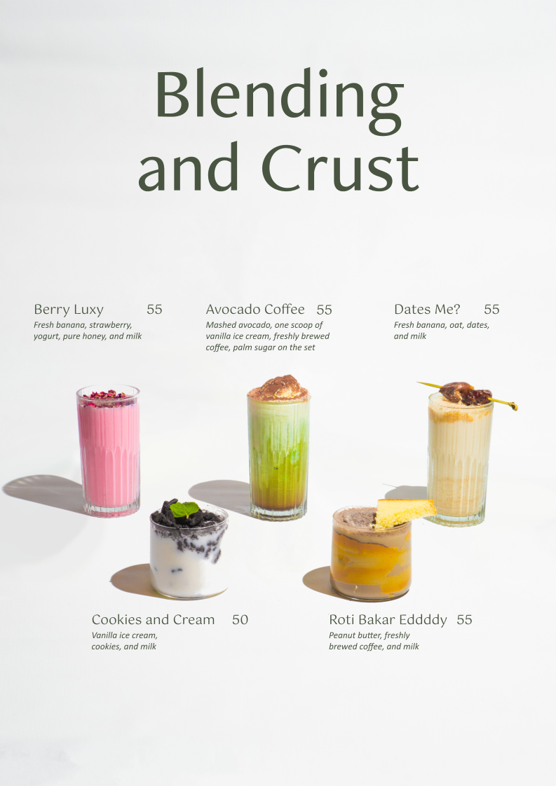 - Main Dishes: Incorporates a range of Asian and Western dishes like Nasi Goreng, Fish and Chips, Lasagna, and Chicken Quesadilla, suitable for casual dining.